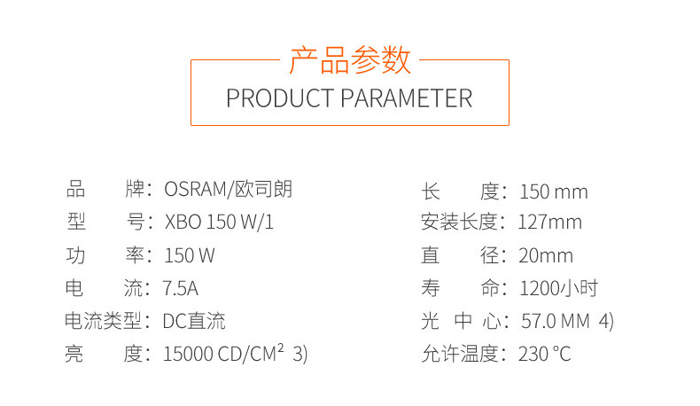 OSRAM XBO 150W-1 is suitable for Hitachi F7000W fluorescent photometer analysis instrument xenon lamp