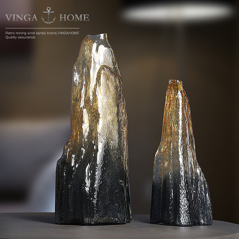 Modern minimal creative Chinese Zen mountain glass plug vase garden Vase swing parts shop decoration