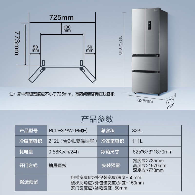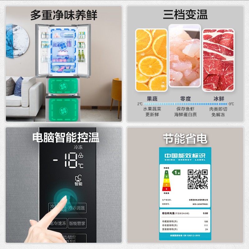 Midea refrigerator 4 four door variable frequency class energy saving household medium open four doors without Frost double door double door 323