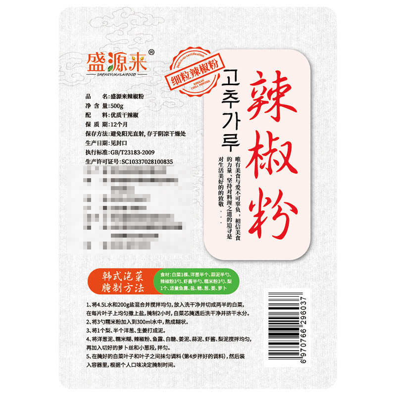 Shengyuanlai Korean chili powder spicy extra fine chili noodles fried chicken barbecue Kimchi special small package 500g