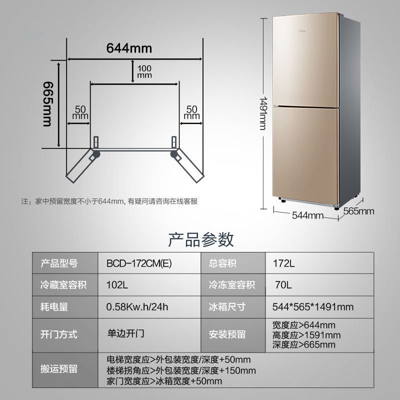 Midea refrigerator 172 liters small household medium sized double door small apartment type rental house energy saving official two-door refrigerator