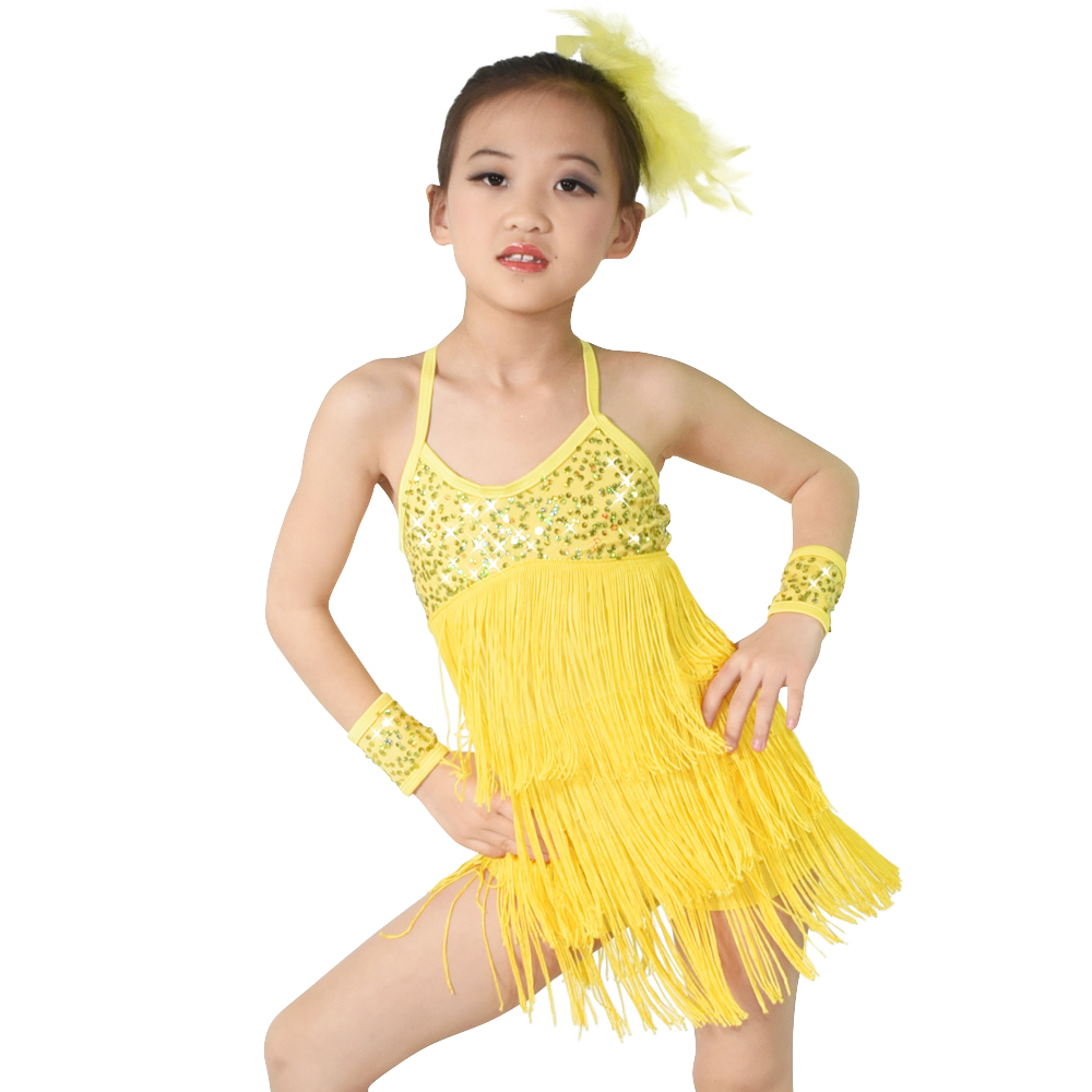 Children's Latin dance costumes sequined tassels shining stage performance costumes Latin dance skirt elegant girls professional competition
