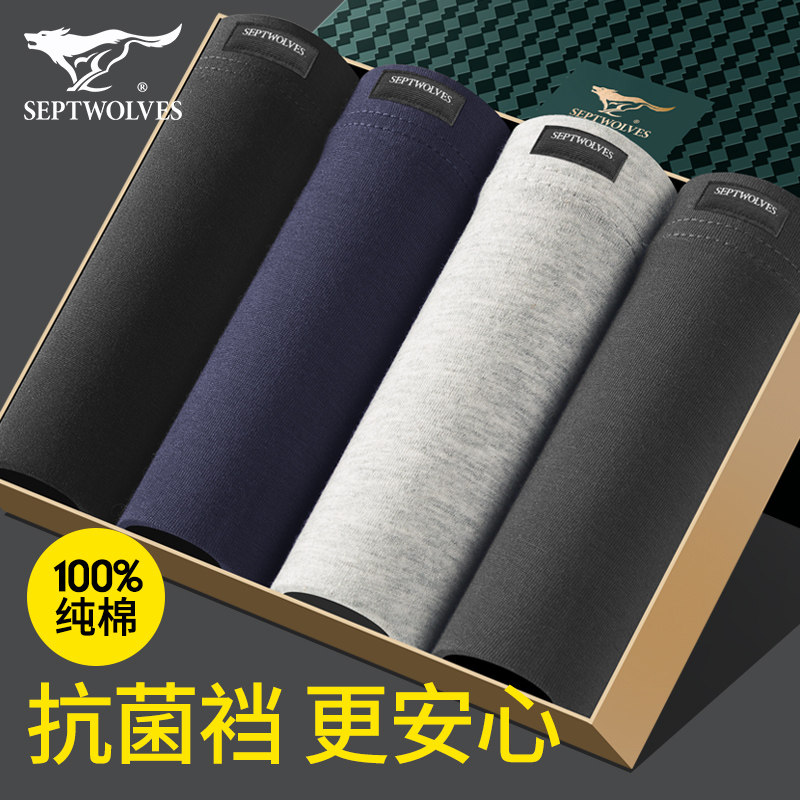 Seven wolves men's underwear men's pure cotton four-legged pants cotton breathable large size loose summer thin four-legged shorts head