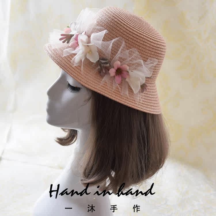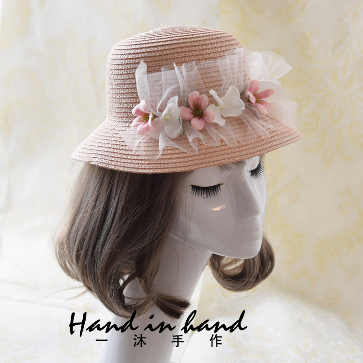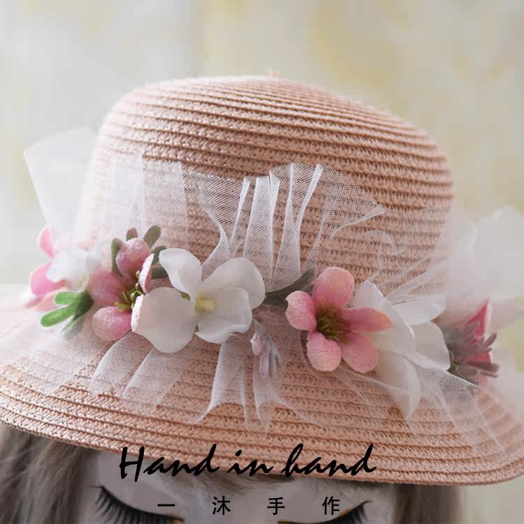 Grass Cap Girl Tide Flowers Flat Top Wide Along Children Beach Hat Summer Day Woman Baby Beach Hat Grass Chicao Flower Bag