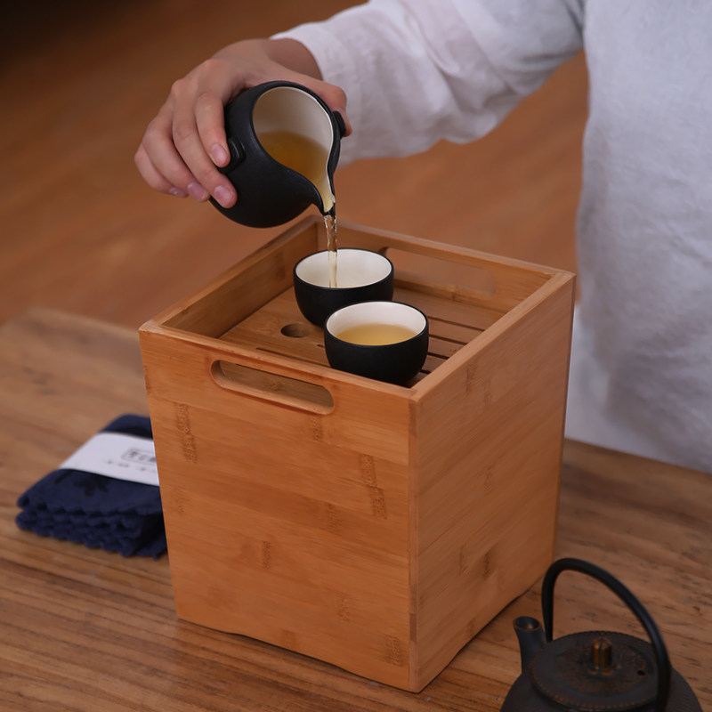Tea bucket bamboo small tea bucket waste bucket accessories tea set retro tea slag bucket solid wood tea trash bin