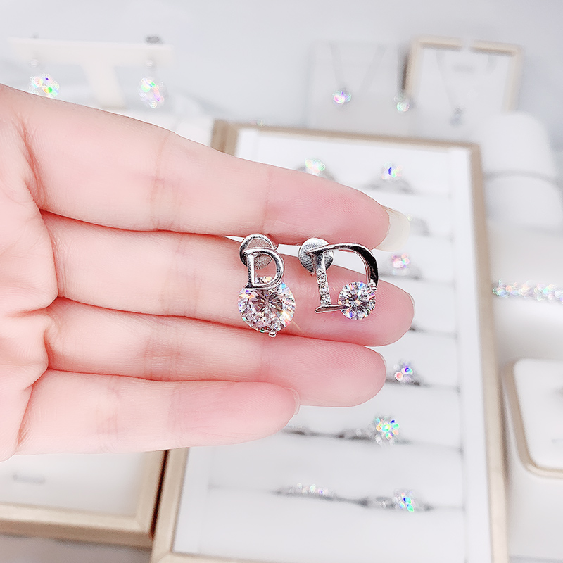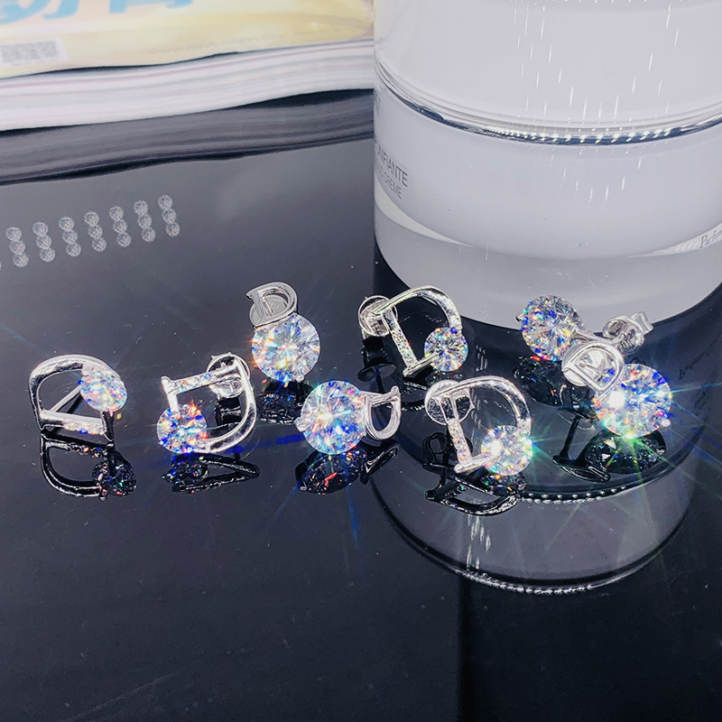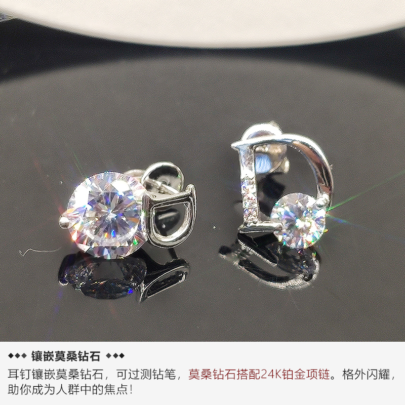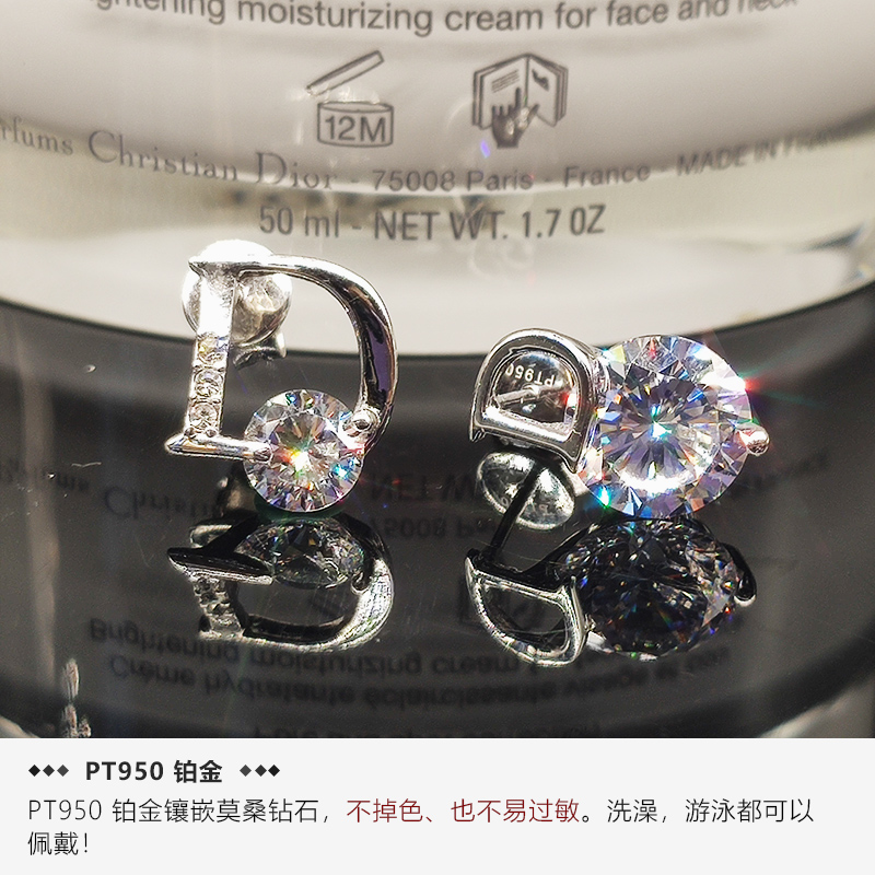 18K platinum letter D type mosanstone irregular earring earring PT950 earring mesh red star identical female