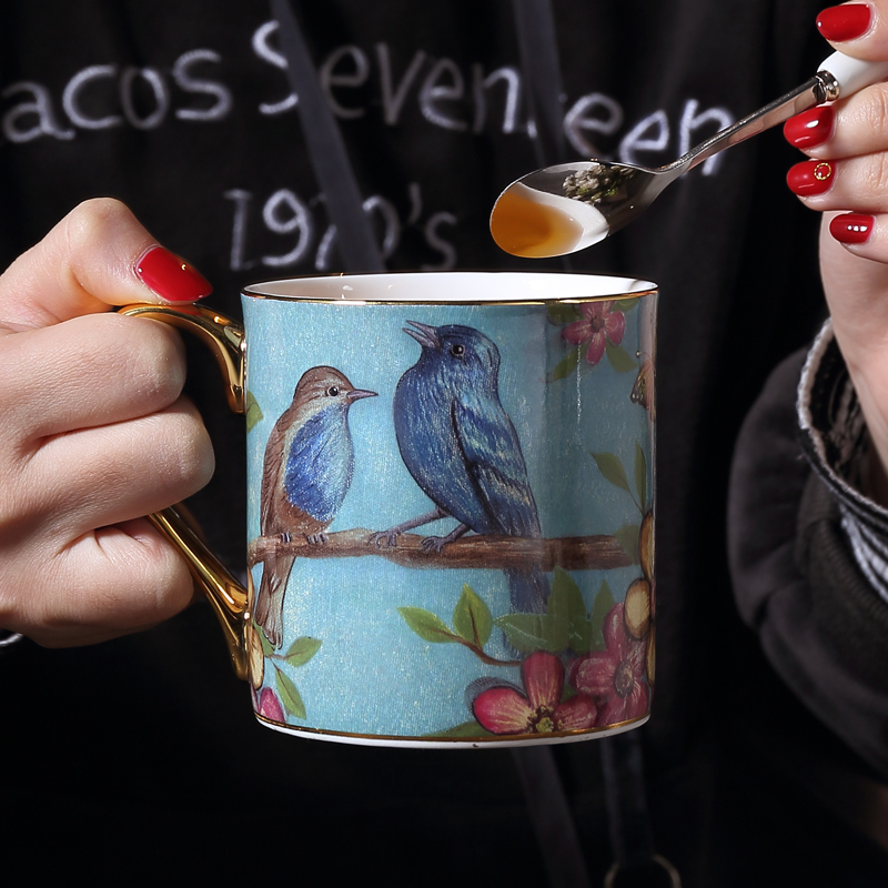 European-style home large-capacity Mark cup with a spoon of creative ceramic cup office bone ceramic drinking cup breakfast cup