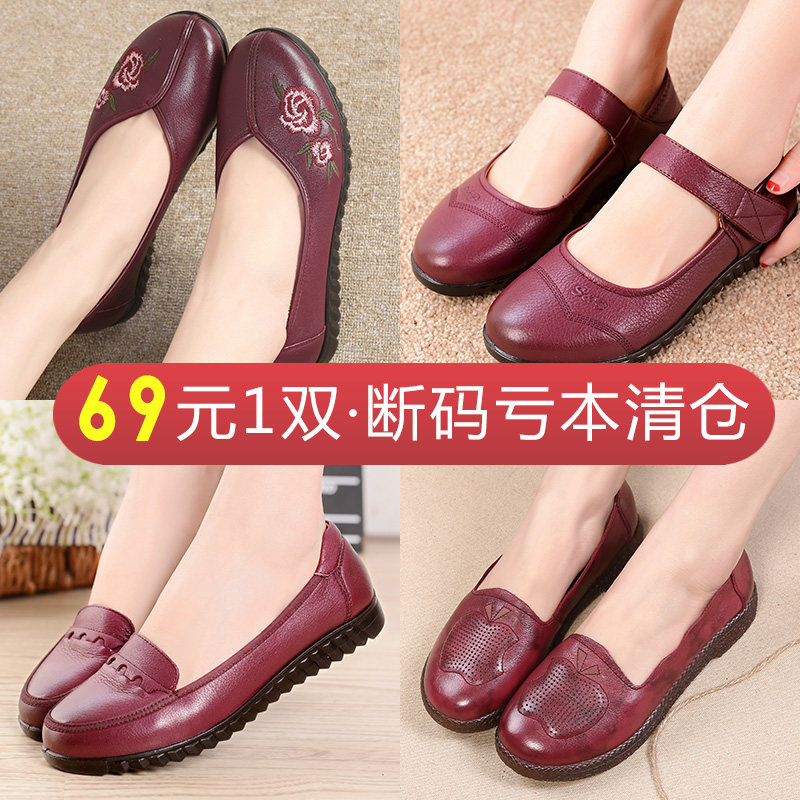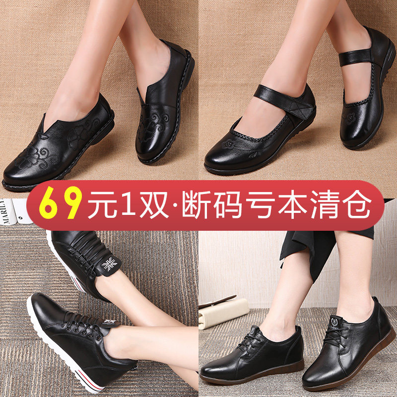 69 yuan a pair of off-code clearance processing women's shoes middle-aged leather soft-soled mother shoes comfortable cowhide single shoes