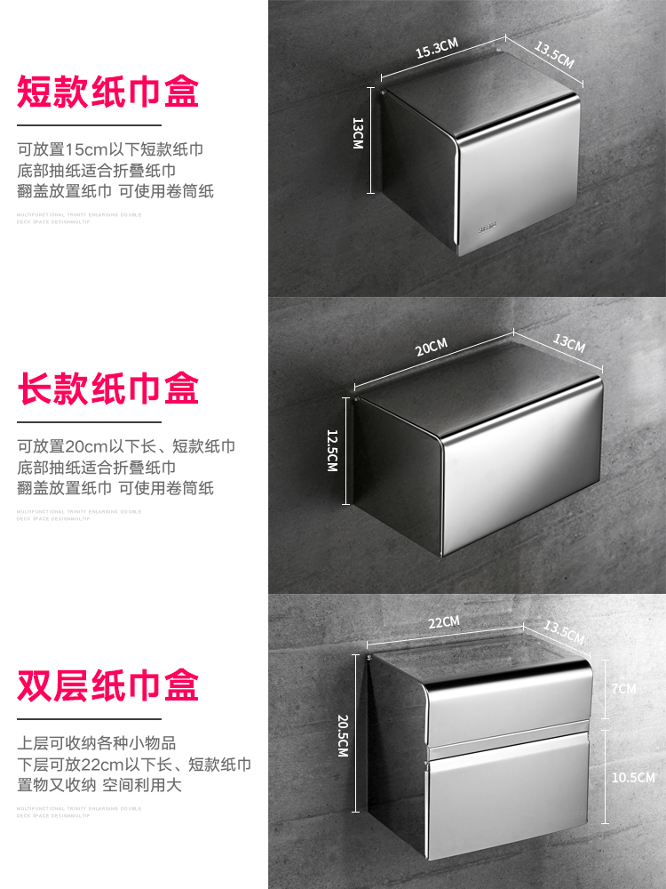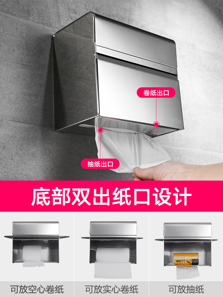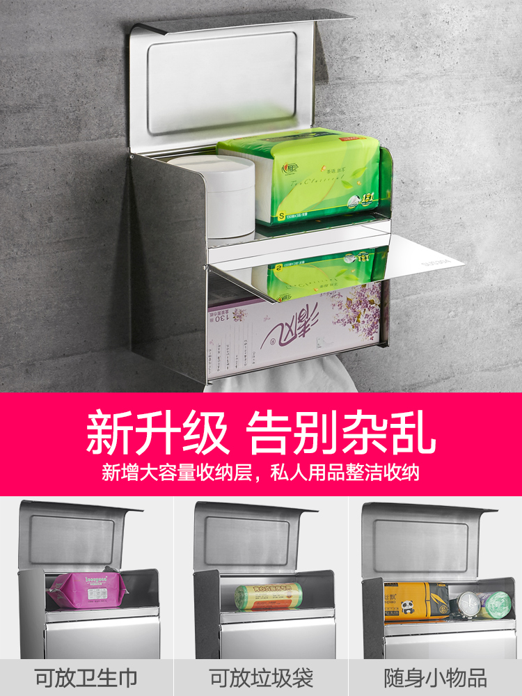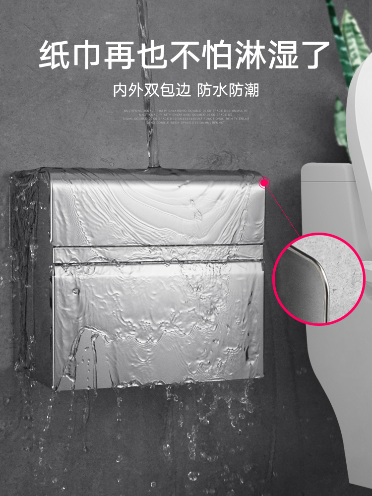 Punch-free stainless steel bathroom roll paper toilet paper toilet toilet paper holder nail-free waterproof toilet tissue box