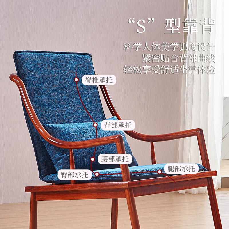Red wood rocking chair Leisure lying chair New Chinese solid wood rocking chair Hedgehog Purple Sandalwood Flowers Pear Wood Old afternoon nap rocking chair