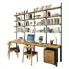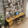 Custom American double desk bookcase combination Household solid wood desk Desktop computer desk with bookshelf one-piece table