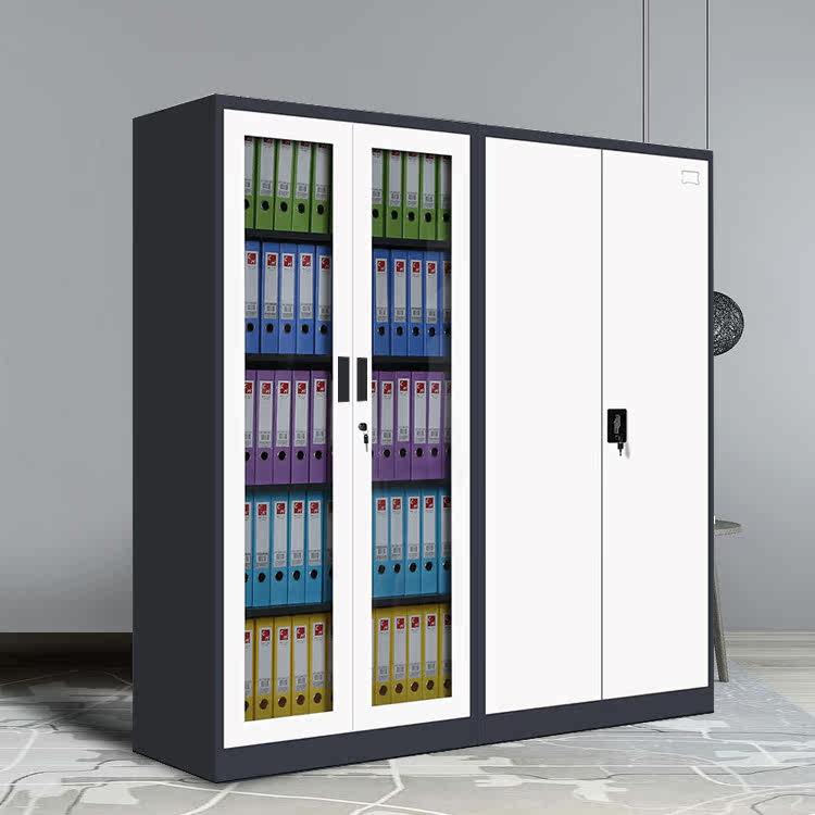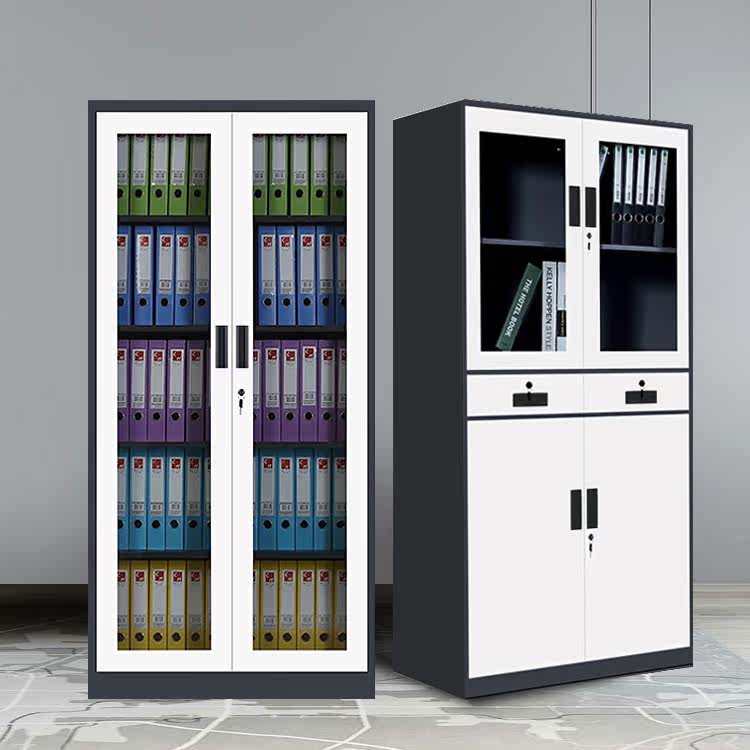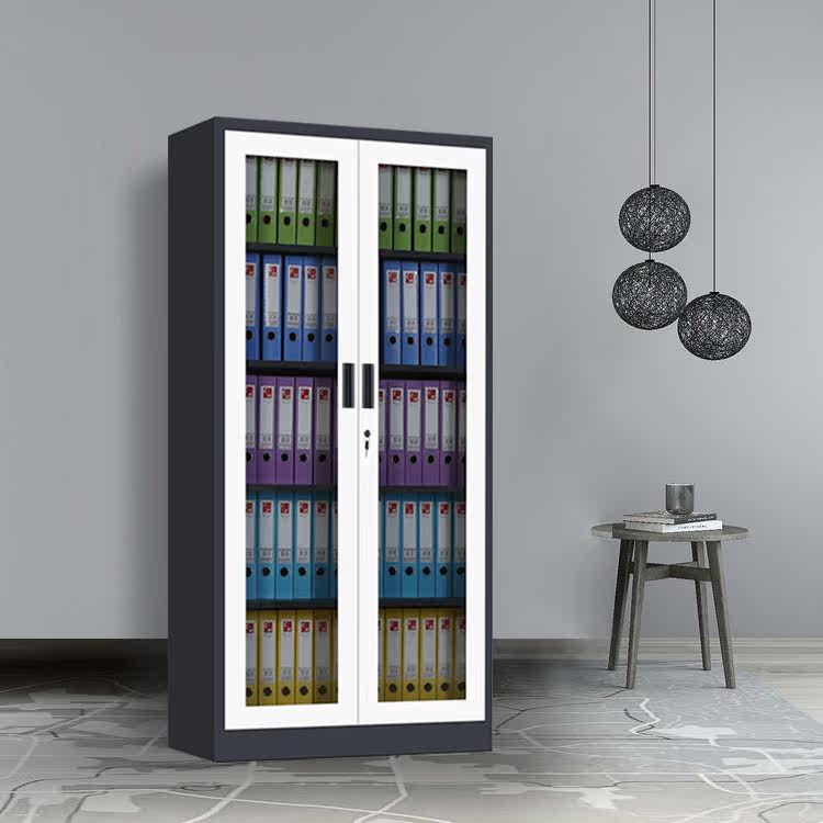 Two doors through glass cabinet thickened steel grey white sleeve colour black and white sheet cabinet manufacturer direct sales file cabinet information cabinet