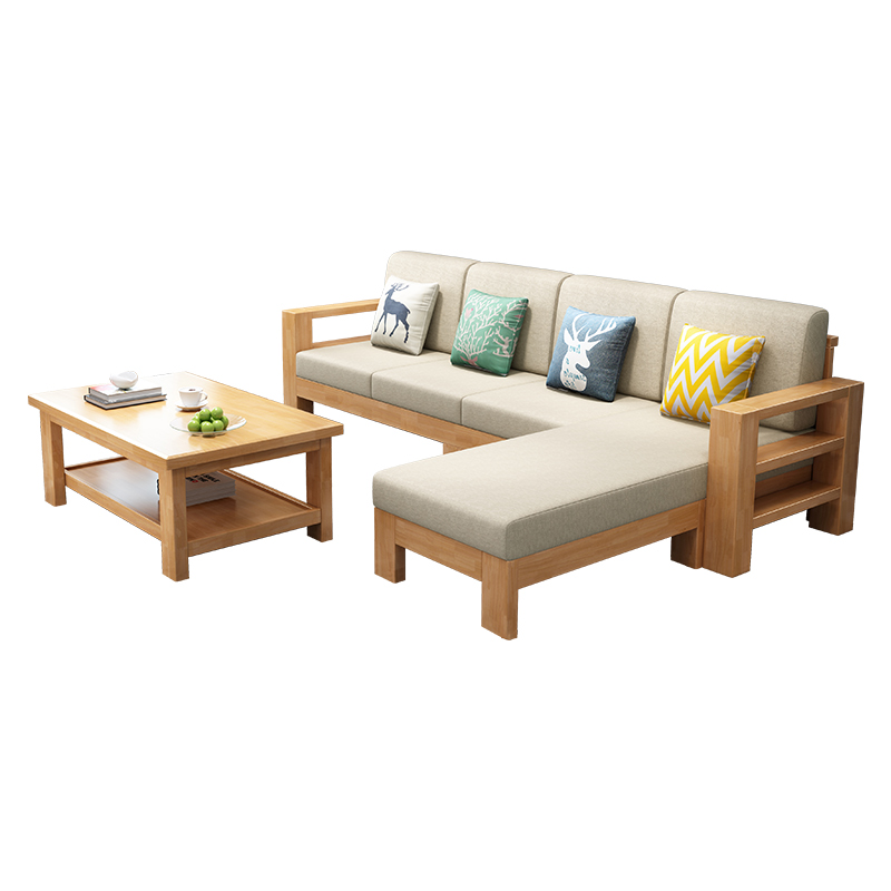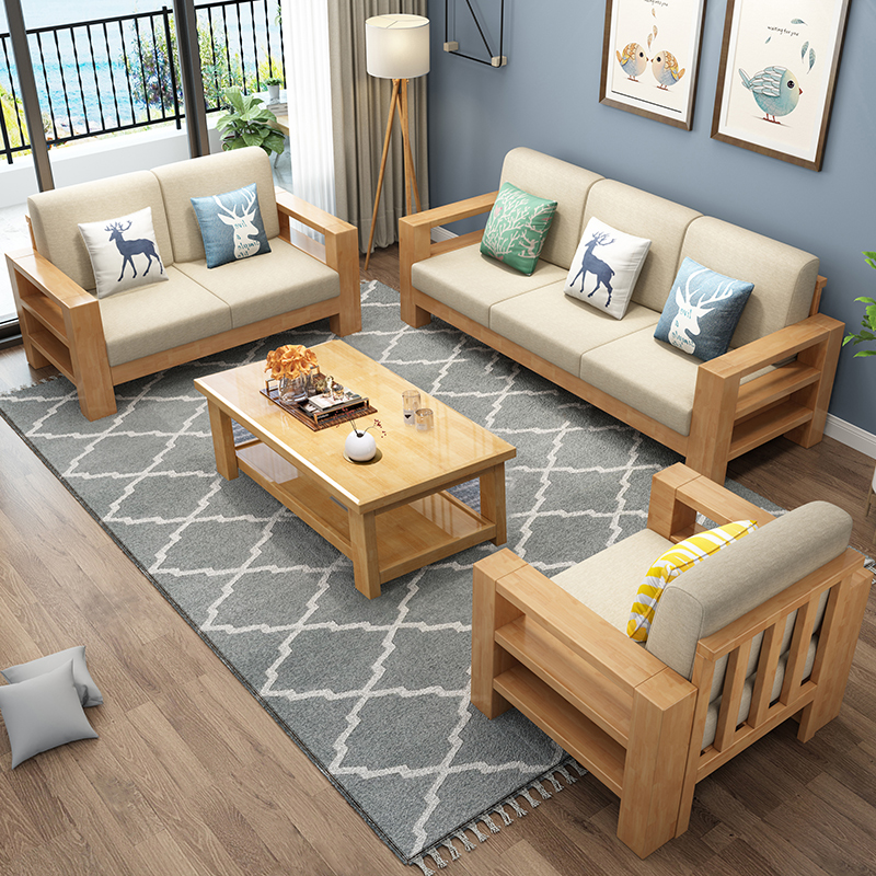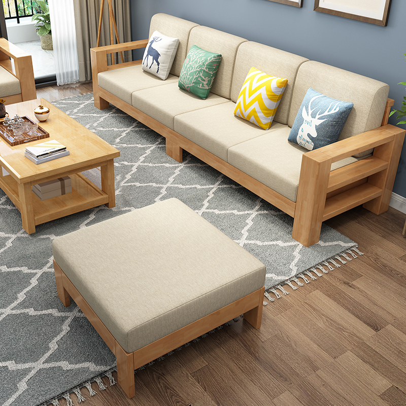 New Chinese style solid wood sofa combination modern minimalist Nordic living room small apartment winter and summer dual-use chaise longue sofa set