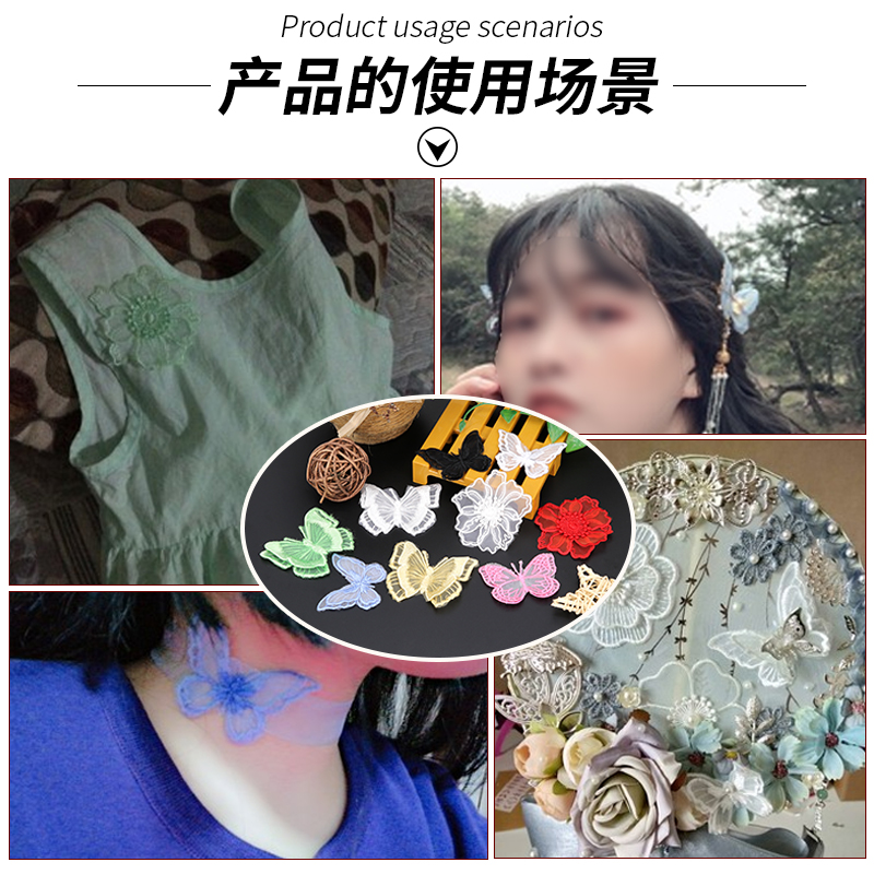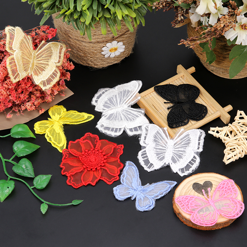 Lace organza embroidery flower cloth patch butterfly decoration black and white decals diy mesh dress pants patch