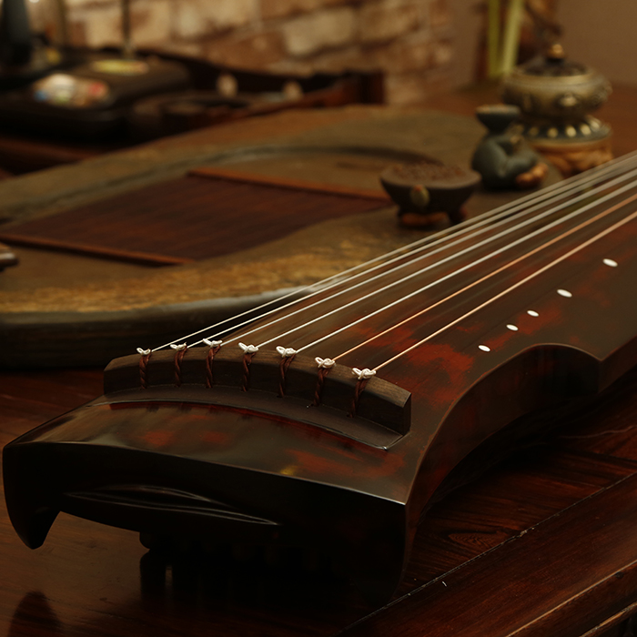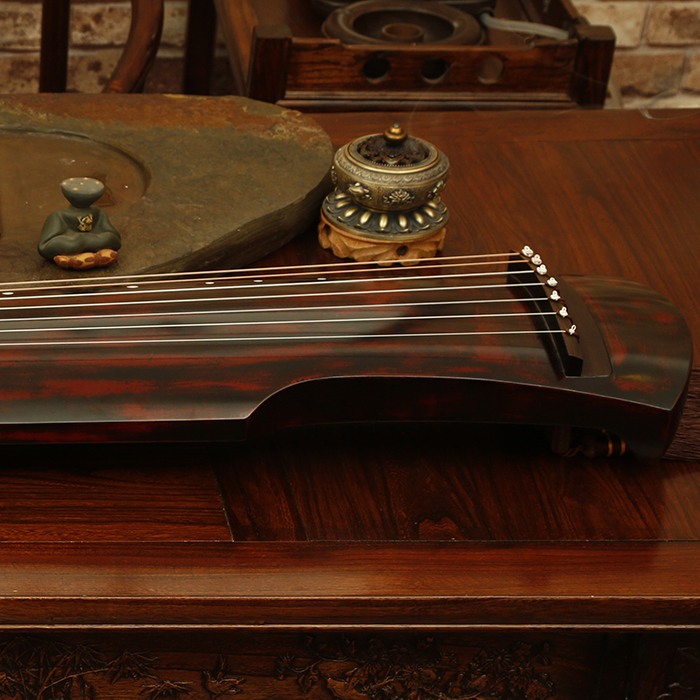 Yanyue Guqin Fuxi's old cedar wood Cedar Black Red Flowers Pure Raw Lacquer Playing Grade of Sand Fuxi Style Guqin