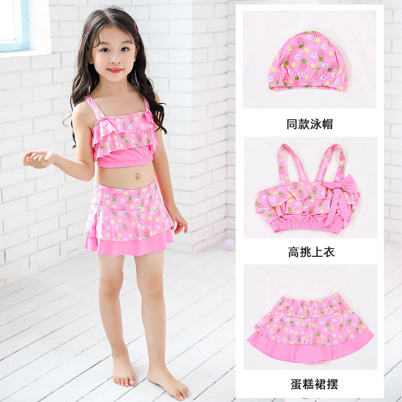 Child Bathing Suit Woman Two-piece Flat Corner Swimsuit Little CUHK Girl Princess Skirt Style Girl Baby Han Edition Suit Swimsuit