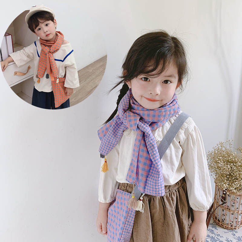 Children's scarf spring and autumn thin windproof warmth boys and girls tartan children wind shield Korean version of the baby bib neck autumn and winter
