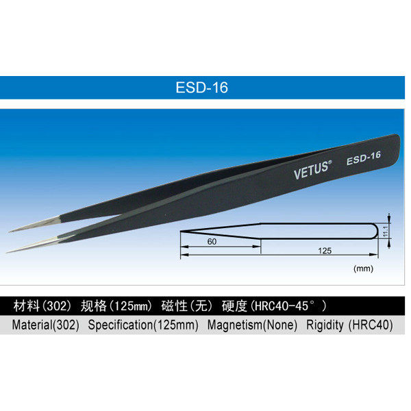 VETUS anti - magnetic acid tweezers High elastic stainless steel tip tweezers anti - static tweezers ESD - 16 tweezers