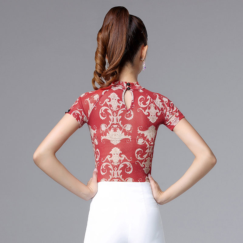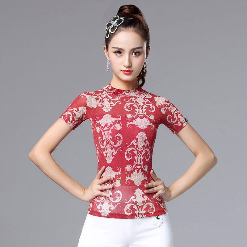Dampao's new BAO WEN Latin dance blouses short sleeve practice Sexy Tennis Morden National Mark Dance Dress-Taobao