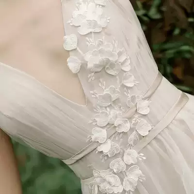 Wedding dress 2021 new bride sling French light wedding dress Super fairy series simple deep V gown door yarn dress women