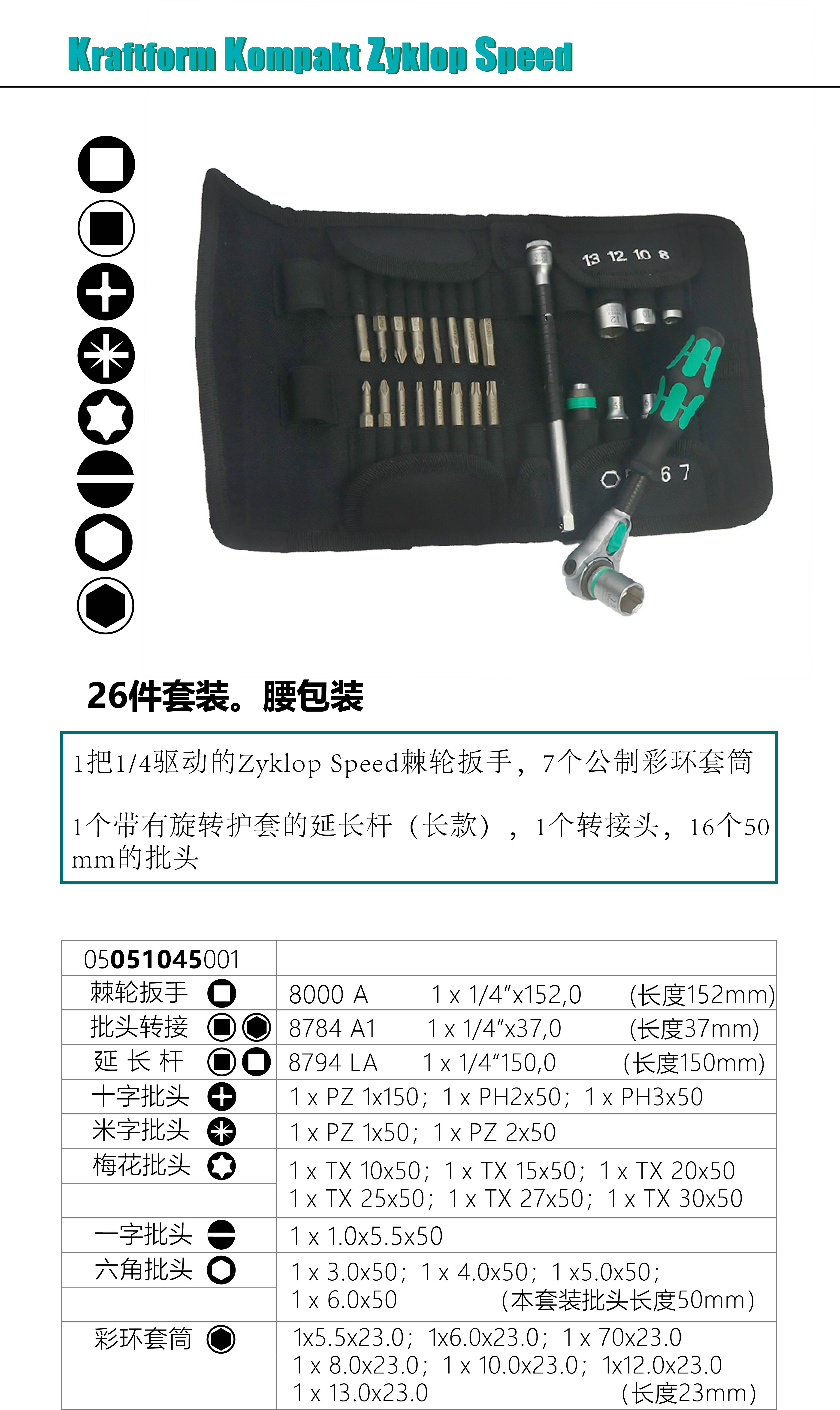 Germany Wera Vera KK Zyklop Speed 8000A1 4 inch ratchet wrench 26-piece sleeve set