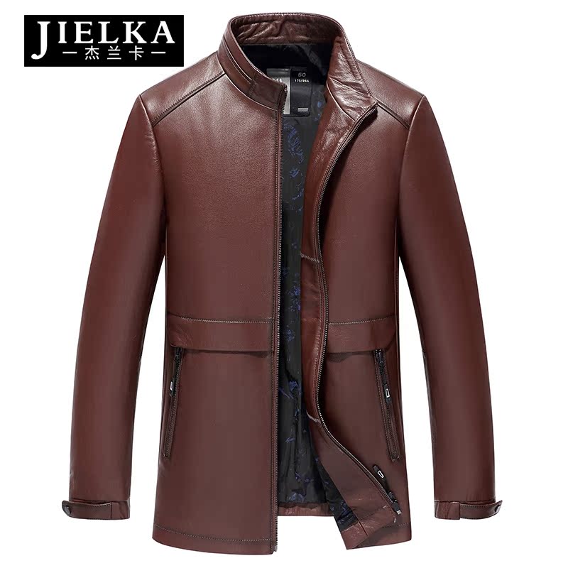 (clear warehouse special price) Henning leather clothes men genuine leather head layer of cow leather with long version of vertical collar leather jacket men's jacket