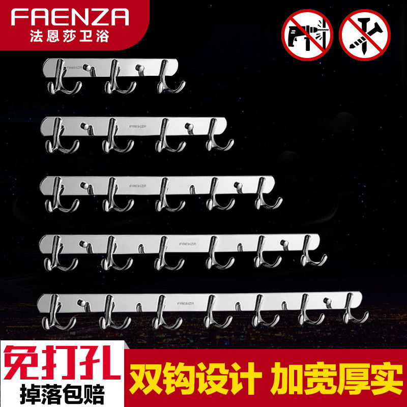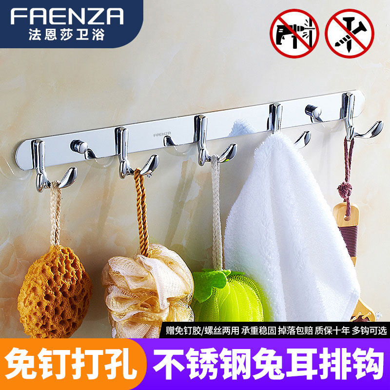 Faensa Dressing Room Free From Punching Stainless Steel Hook Door Rear Wall Hanging Hood Hook Kitchen Clothes Hook Rabbit Ear Double Hook