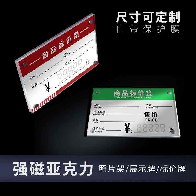 Transparent strong magnetic wall sticker price card Acrylic high-grade price card Flat tile label display card customization