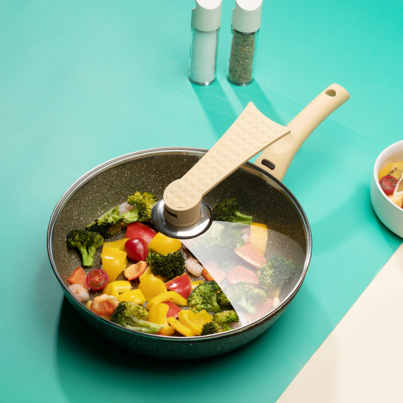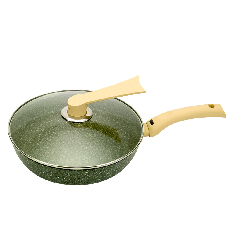 Yi Youfu imported non-stick pan flat-bottomed smoke-free wok Household wheat rice stone wok Induction cooker gas stove is suitable