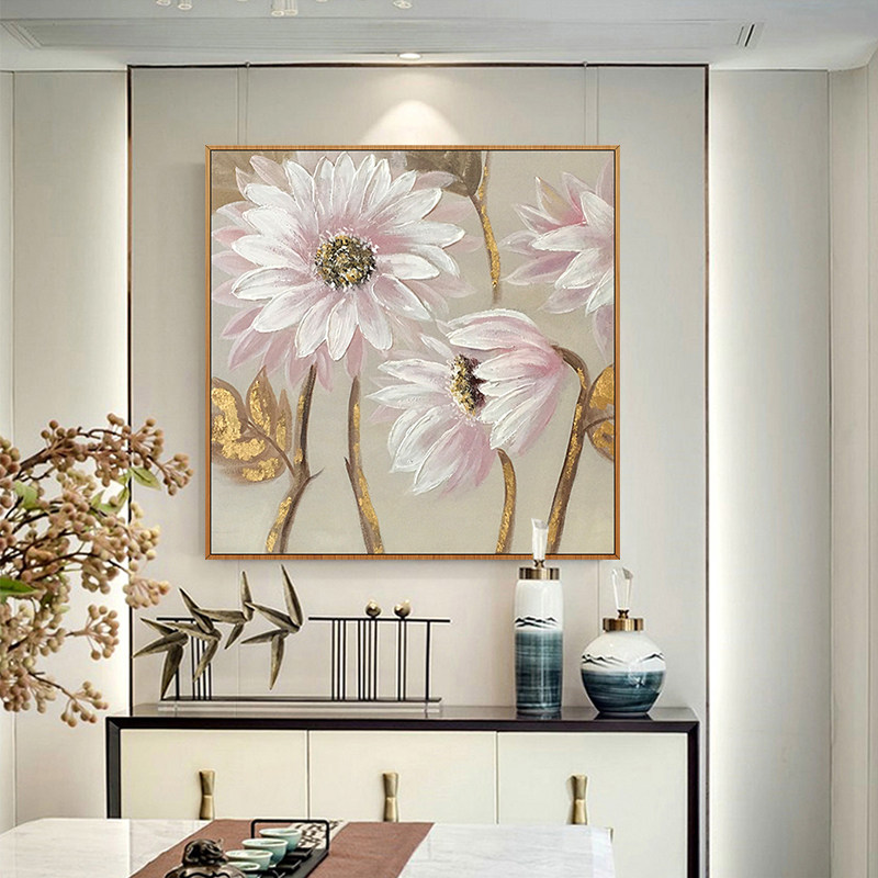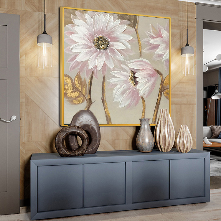 Hand-painted Oil Painting Pink Floral Drawing Room Sofa Decoration Painting Brief American Light Extravaganza BACKGROUND WALL HANGING PAINTING ON THE BACKGROUND WALL