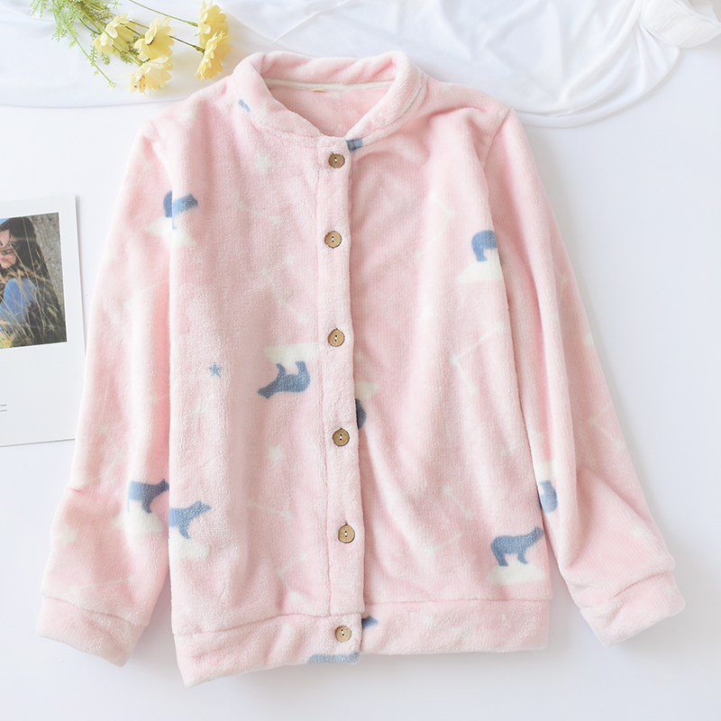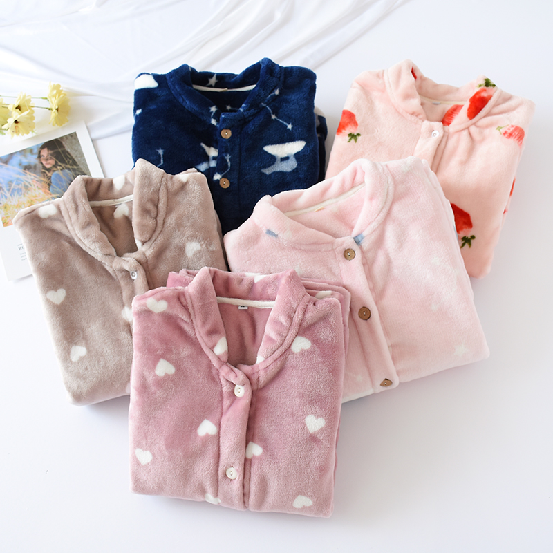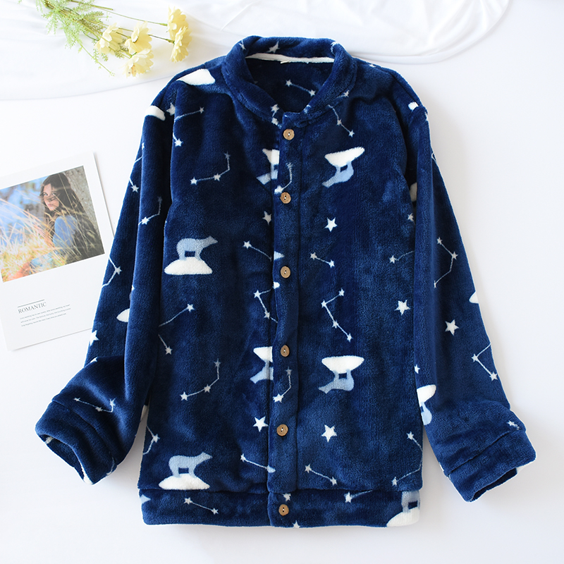 Flannel one-piece pajama tops for men and women autumn and winter large size thickened warm collarless cardigan Coral velvet home clothes
