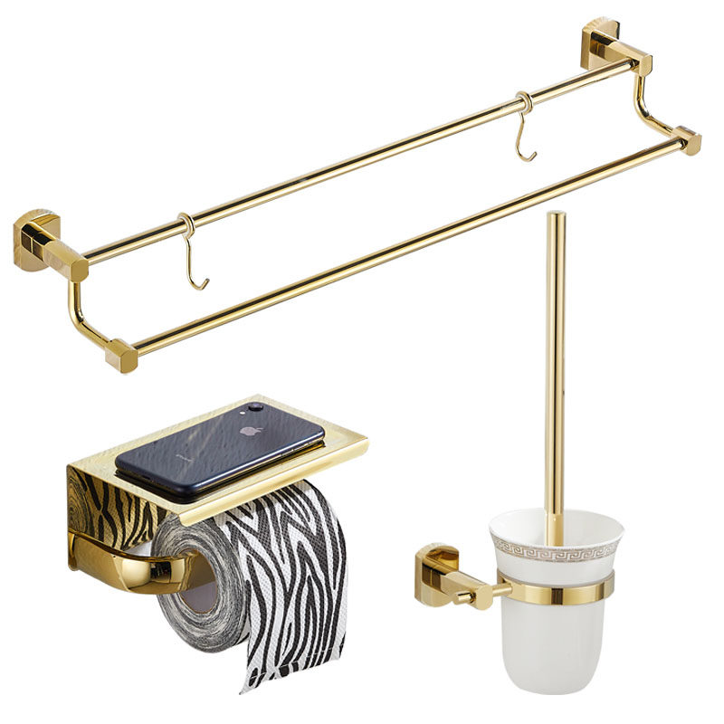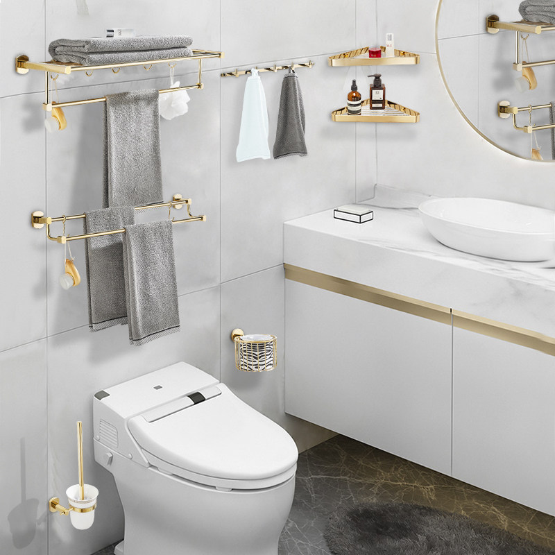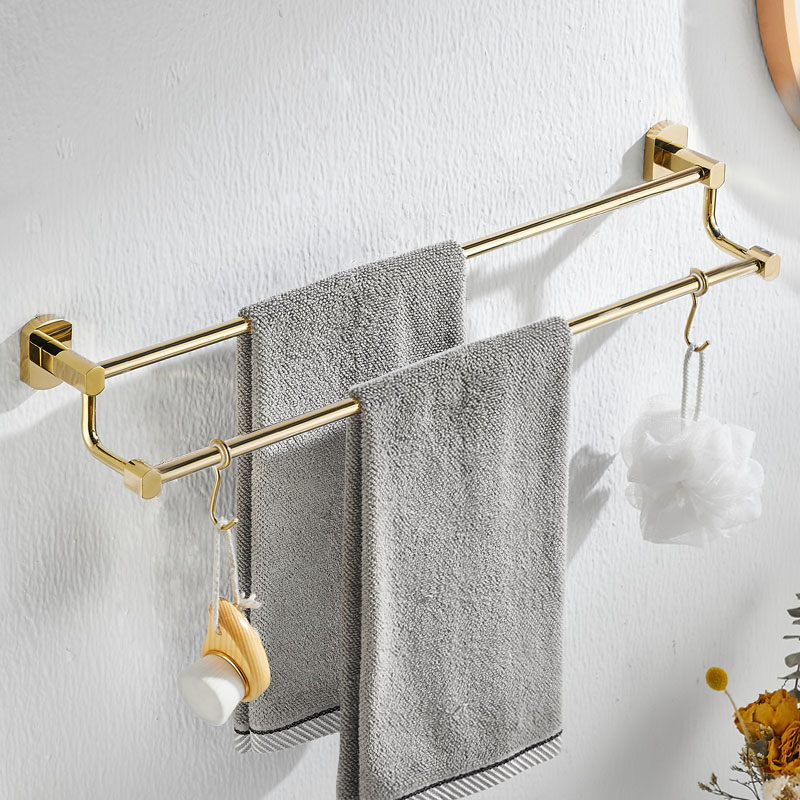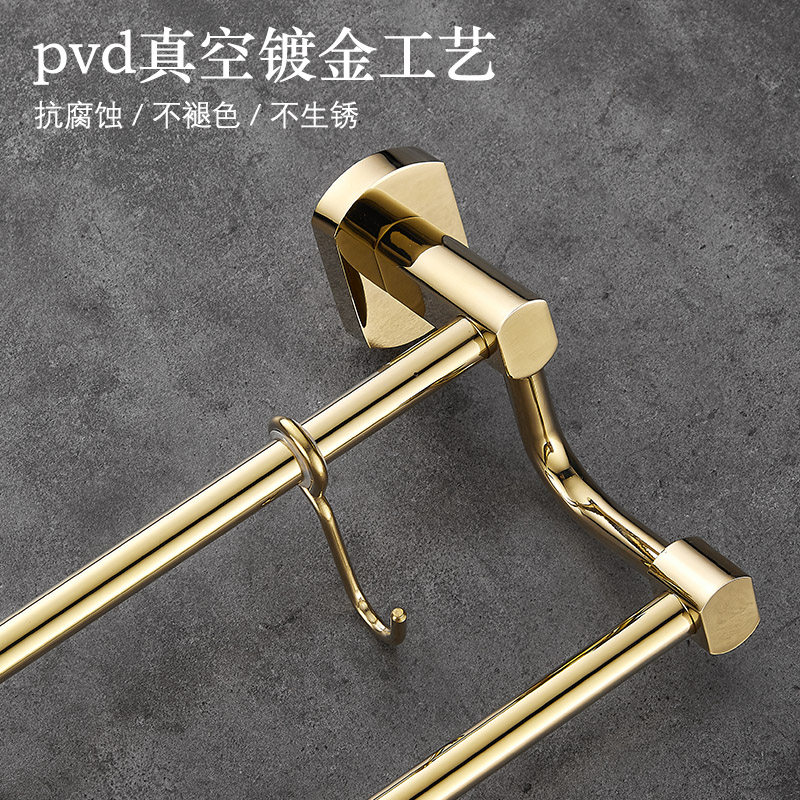 All copper bath towel rack double pole towel rack free of punching light luxury gold bathroom bathroom hardware hook rack
