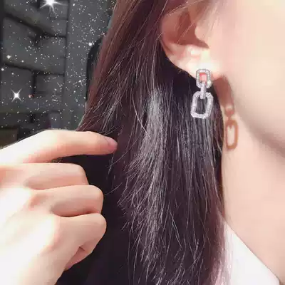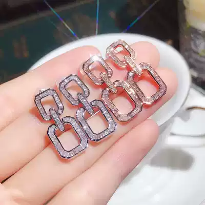 Junhuang jewelry 18K Platinum Luxury full of diamond earrings irregular ladder square diamond earrings female