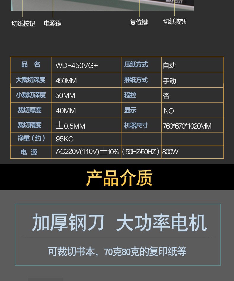 Automatic paper cutter, precision paper cutter, electric paper cutter, safety protection WD-450VG manufacturer supply