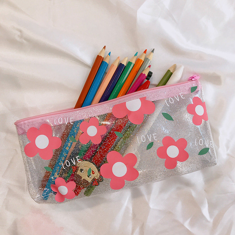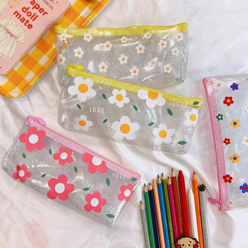 Day Ensemble Cute Little Fresh Flowers Brief Bright Shiny Pen Bag Students Large Capacity Teenage Girl Stationery Bag Pencil Bag