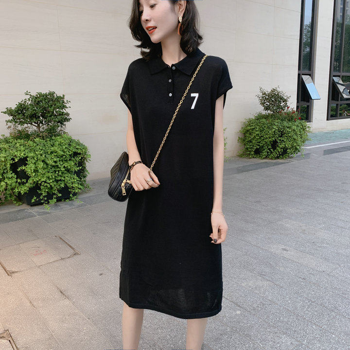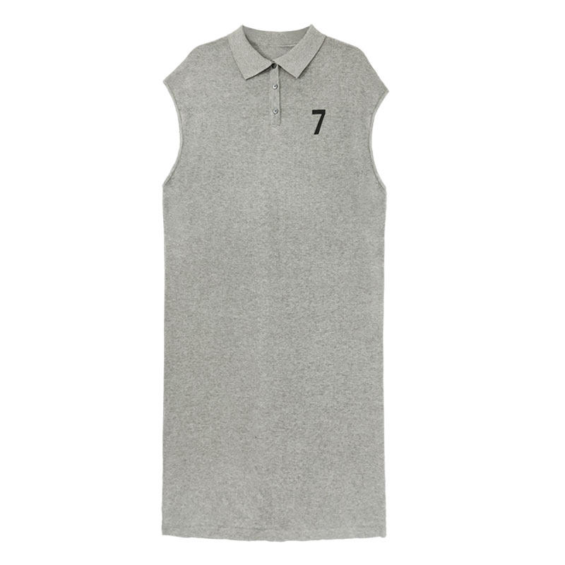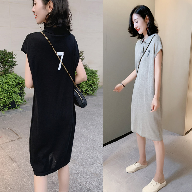 Gray polo collar dress female summer 2023 new European stone European ice wire knitted casual straight tube T shirt dress