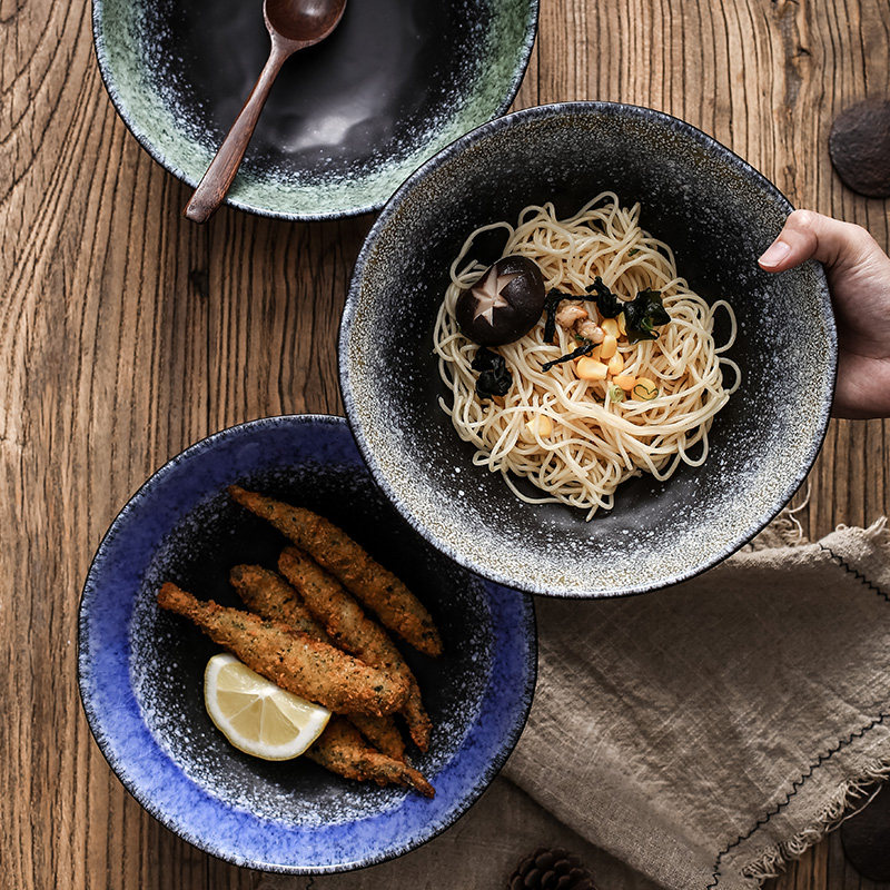 9 inch Ramen Bowl-Lake green 9 inch Ramen bowl-Volcanic ash yellow 9 inch Ramen bowl-Starry sky blue