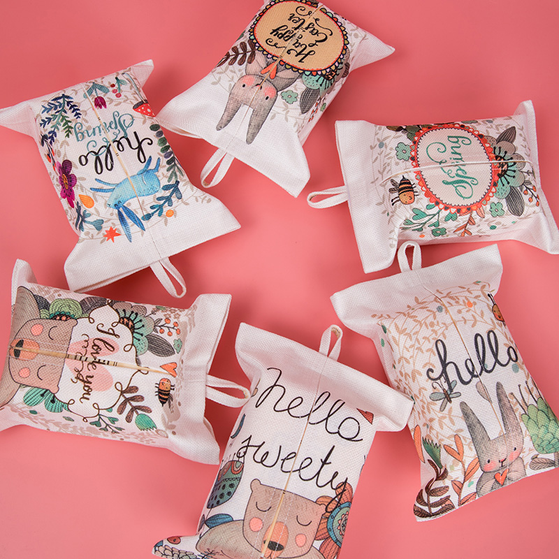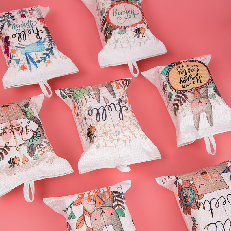 Nordic ins cute bunny paper towel set cotton linen fabric office home bedroom paper towel bag can be hung