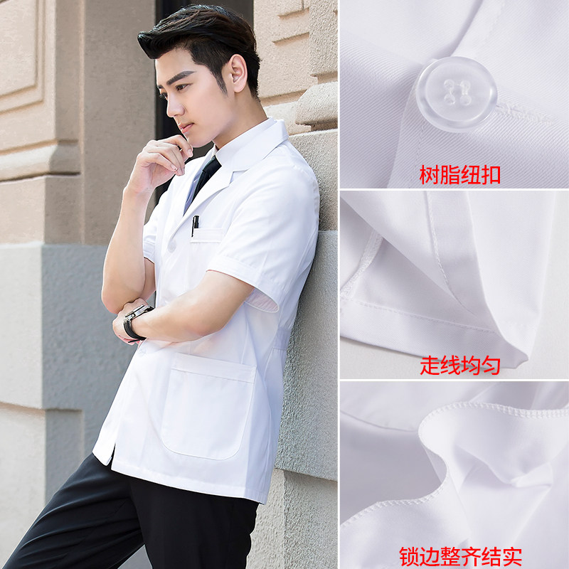 White coat male doctor suit Summer season short sleeve short half sleeve long sleeve experimental oral white coat thin overalls