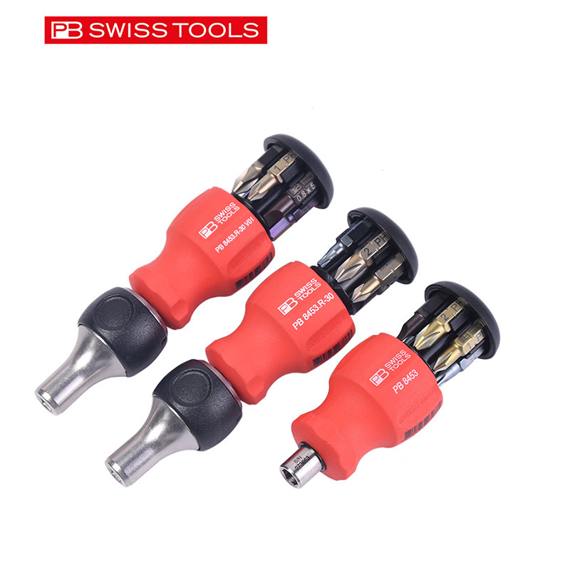 Swiss PB ratchet screwdriver set with exchangeable head imported multifunction short handle opener short coarse screw driver cross I
