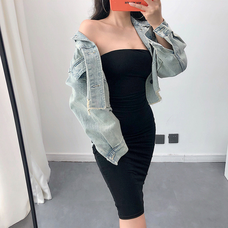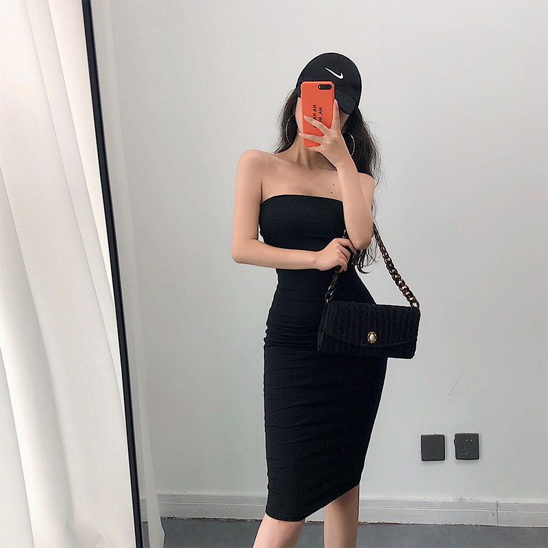 YoungGirlDay European and American style sexy one-piece collar tight and thin double bandeau hip bottoming dress