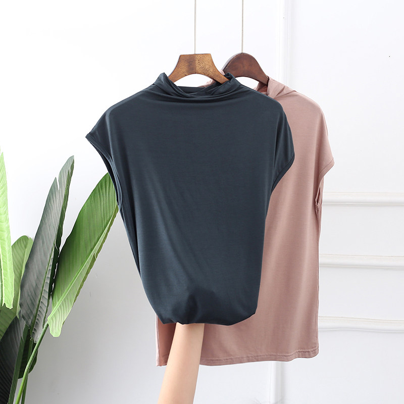 Modale T-shirt woman high collar sleeveless high collar slim fit 100 lap mom dress half height collar large size short sleeve undershirt