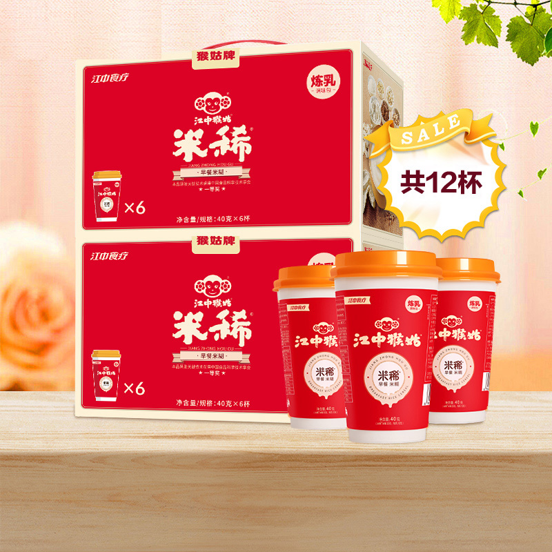 Jiangzhong monkey gu breakfast rice glutinous rice glutinous rice glutinous rice cereal nutrition gift box non-monkey mushroom 40g*12 cups