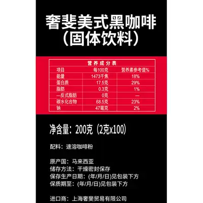 The original imported 100 pieces of luxury phei CEPHEI American sugar-free added pure black freeze-dried instant coffee powder