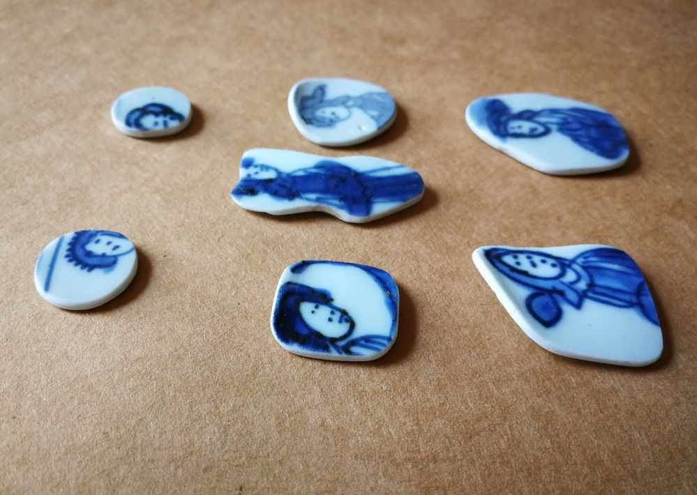 Ancient waitresses and women's paintings at least Ming Dynasty ancient porcelain pieces figures have been polished to be used to renovate the bag silver inlaid red wood