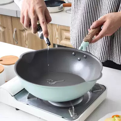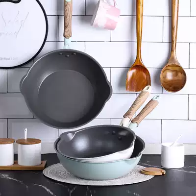 Thickened non-stick wok frying pan oil fume-free household wood grain frying pan wok gas cooker induction cooker special pan