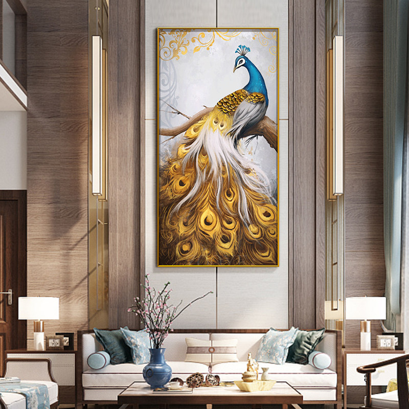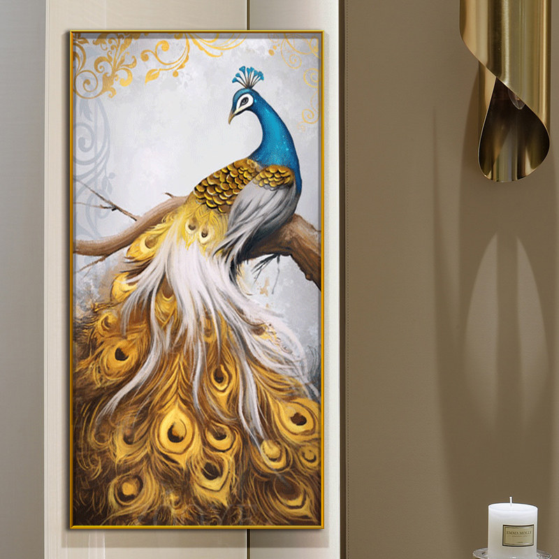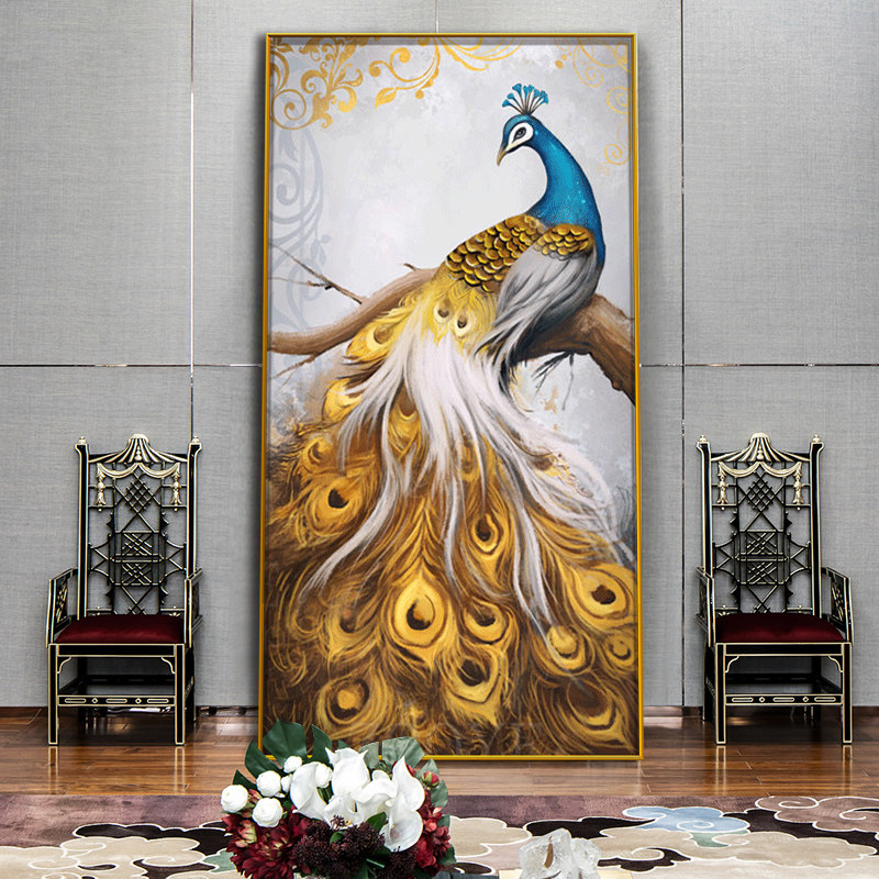 Hand-painted Oil Painting American Genguan Hung Painting New Chinese Corridor Aisle Decor Hotel Villa with large solid peacock