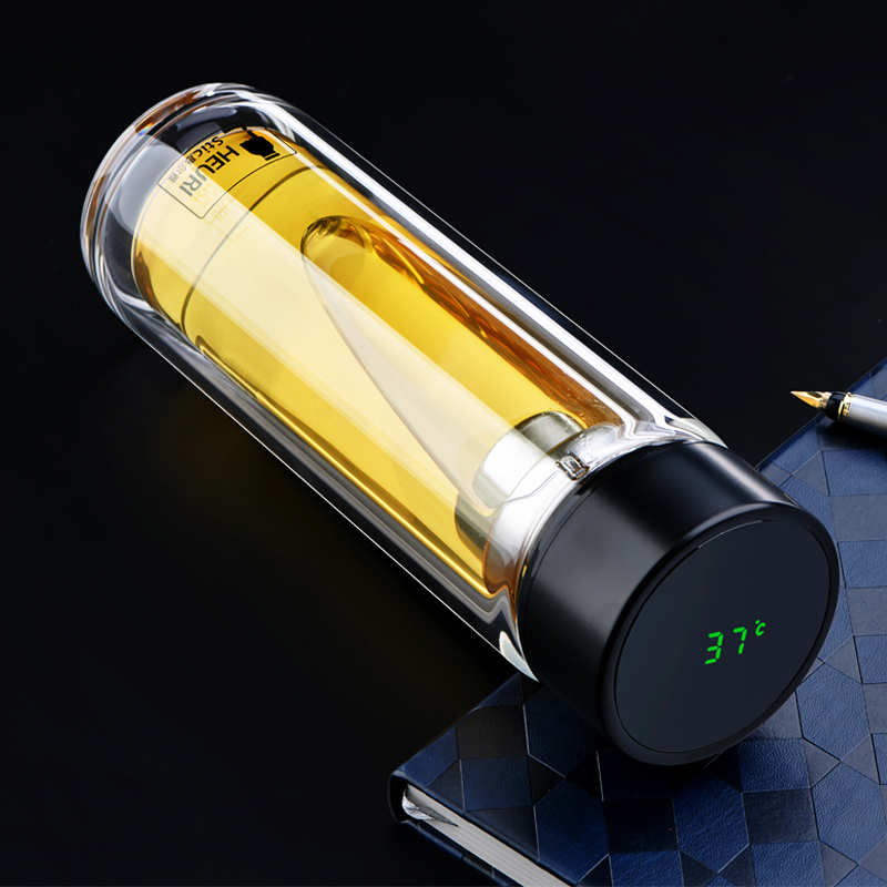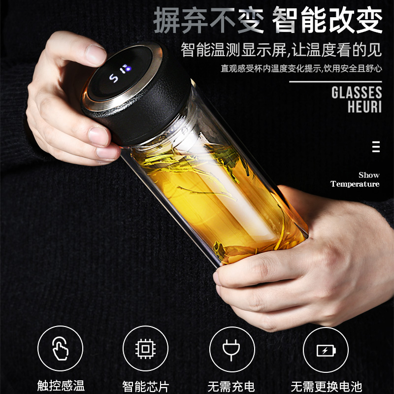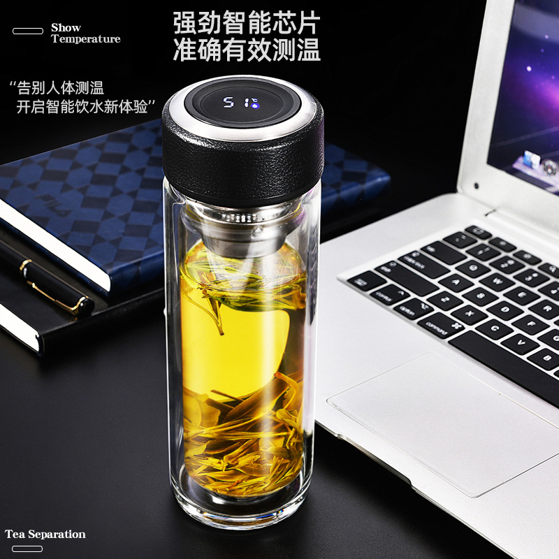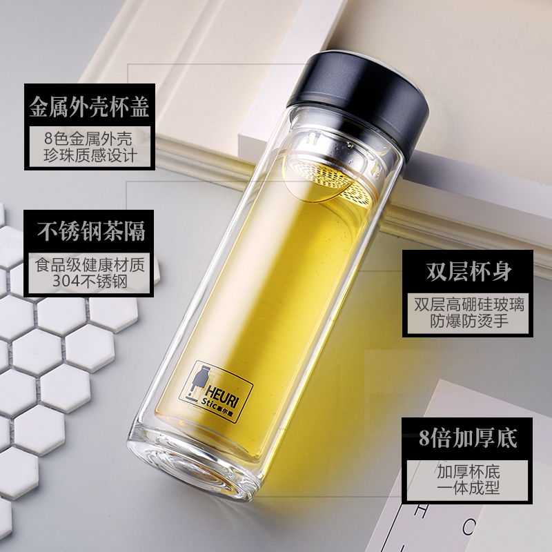Double-layer glass men with lid insulated water cup Women's large capacity tea water separation tea cup Personal custom