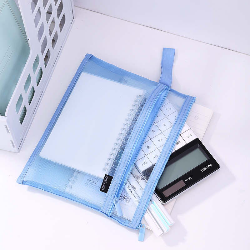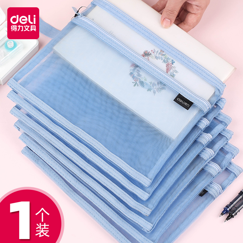Deli Mesh Zipper Bag A5 Storage Grid Zip Bag File Bag Data Storage Single Layer Double Layer Student Test Paper Small Stationery Storage