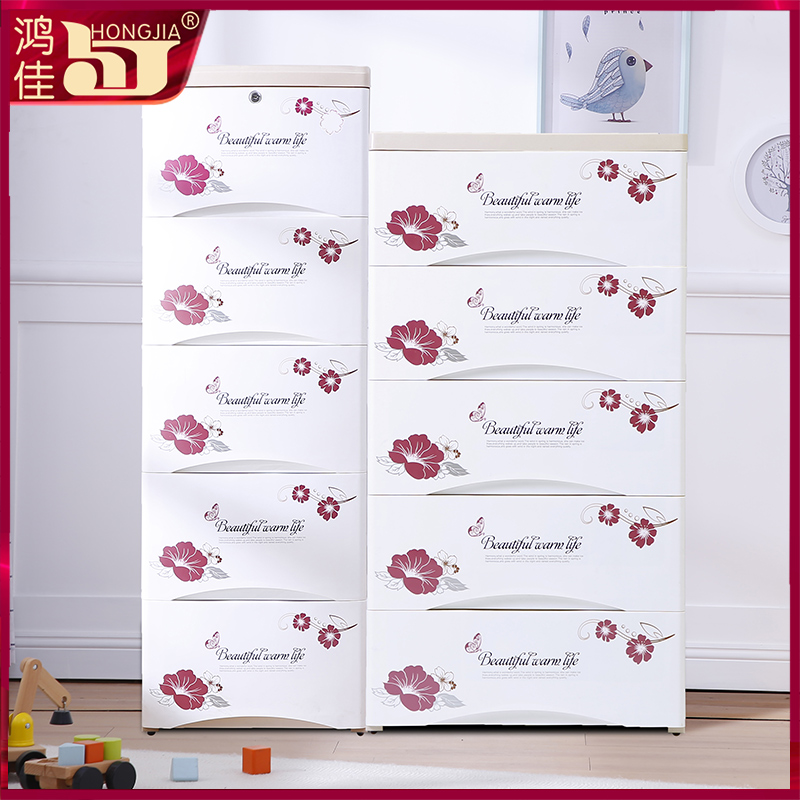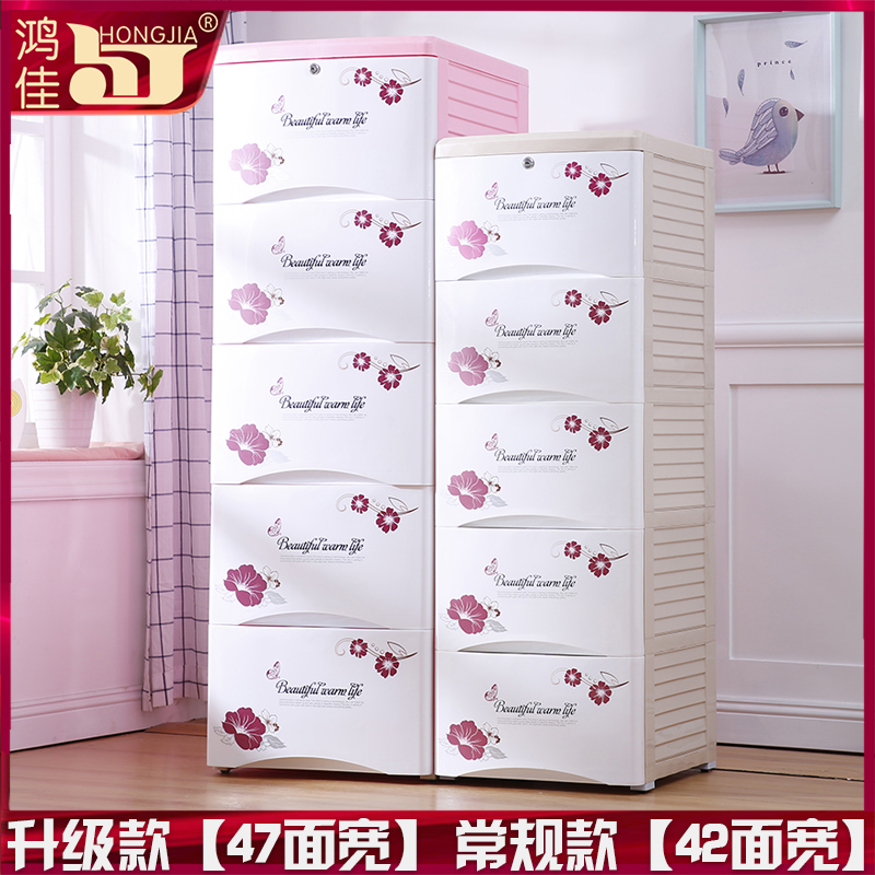 Hongjia thickened large drawer plastic storage cabinet Children's baby locker Toy finishing box Glove box
